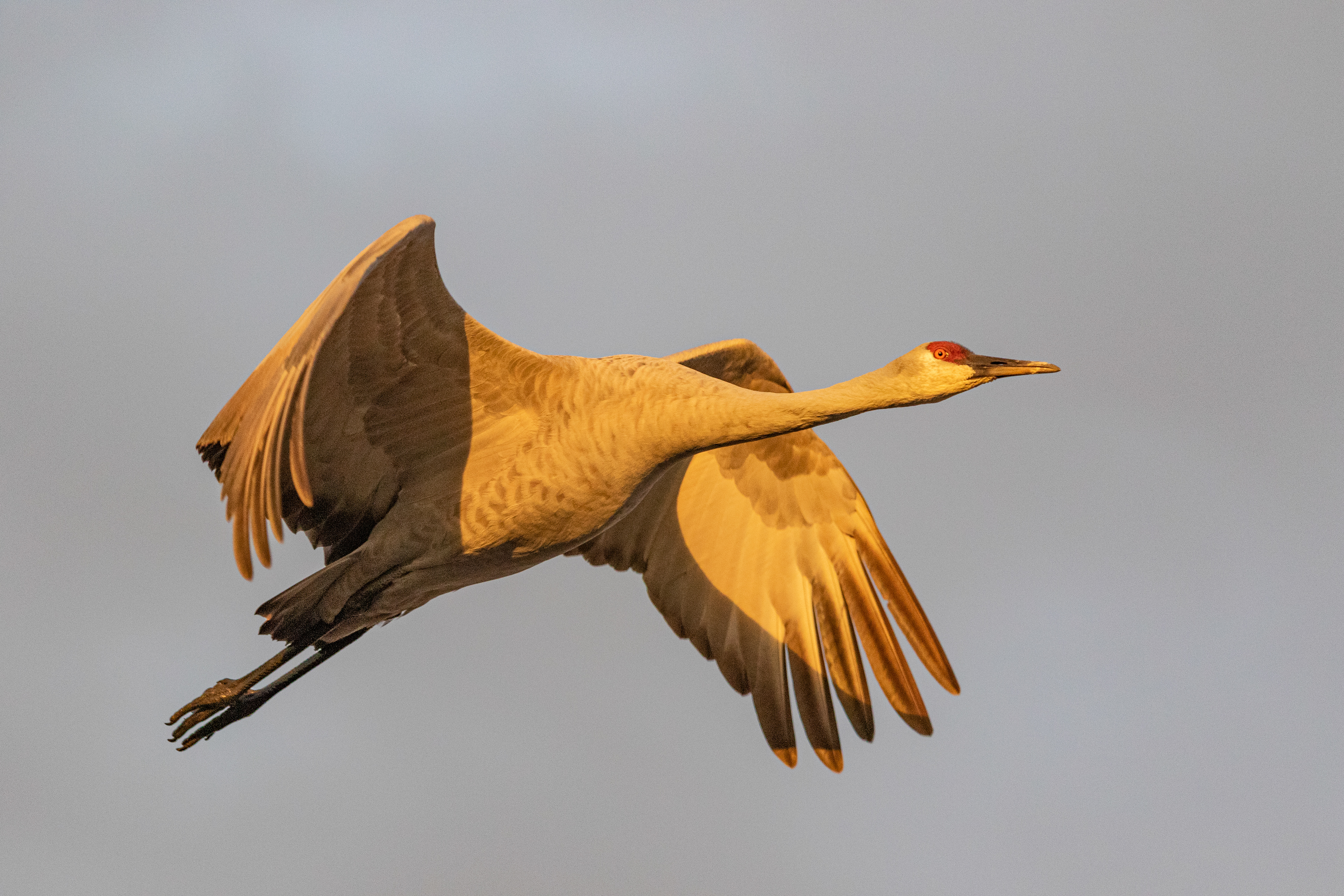 Crane landing at sunrise, Bosque del Apache National Wildlife Refuge, San Antonio, NM