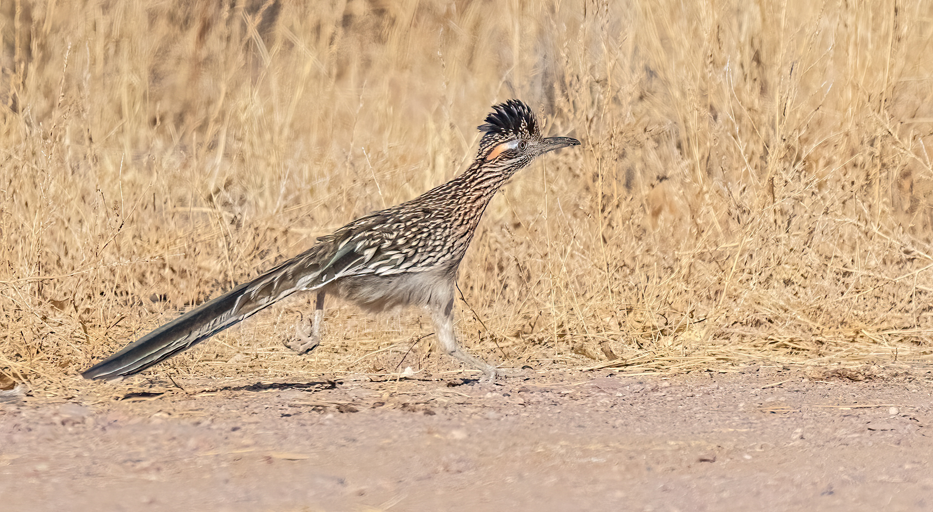 My brother, who was traveling with his wife and me, wanted very badly to see a road runner. This handsome male gave us our one chance, as he sauntered down the road.
